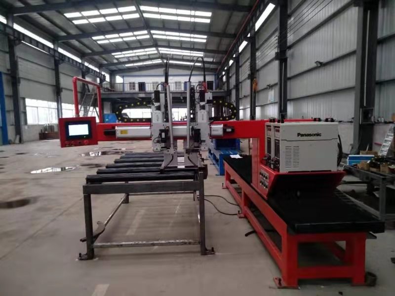 掛車生產(chǎn)過程中,車廂門因量大、工序復(fù)雜、焊接難度高,制約著生產(chǎn)產(chǎn)量。金瑞公司在原單槍焊接工藝基礎(chǔ)上,研發(fā)出雙槍自動化焊接設(shè)備。該設(shè)備立足于自動化生產(chǎn)線布置,從起槍、焊接、旋轉(zhuǎn)、收槍、回位,實行全自動編程控制,一臺設(shè)備相當(dāng)于兩臺設(shè)備生產(chǎn)效率,避免了焊接生產(chǎn)中活件翻轉(zhuǎn)工序,勞動效率提高兩倍以上。